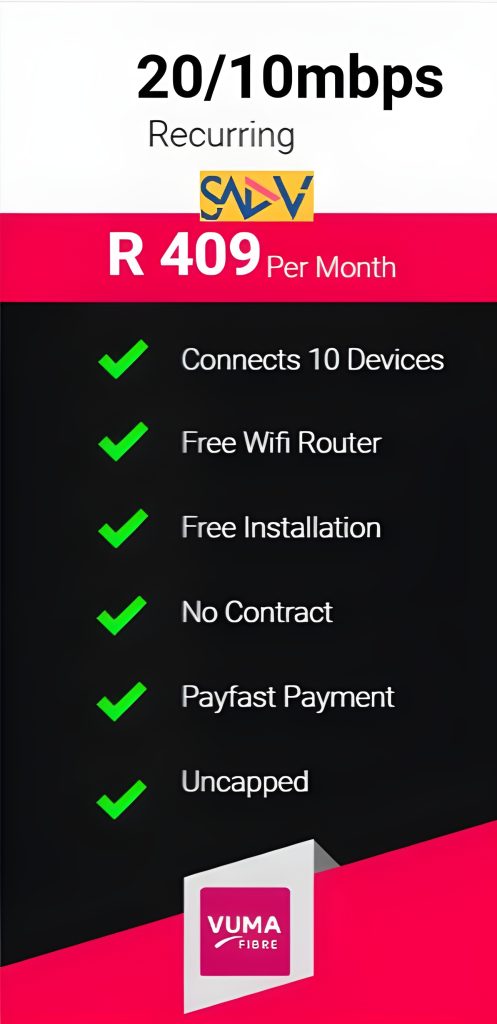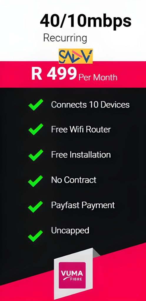 We’re proud to be an authorised Vumatel partner, bringing you the best fibre internet solutions. Explore our range of Vumatel fibre packages, tailored to meet your unique needs – whether you’re a home user, a business, or a gamer.